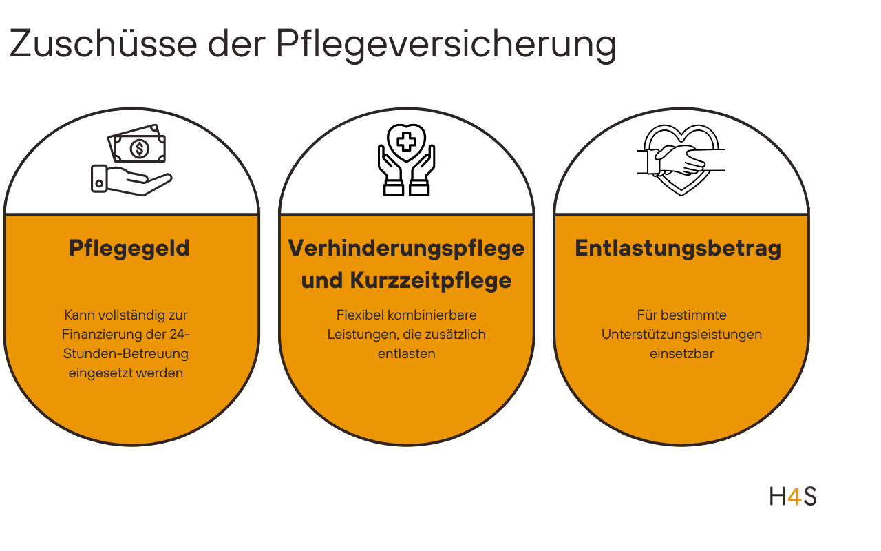 - Pflegegeld: kann vollständig zur Finanzierung der 24-Stunden-Betreuung eingesetzt werden